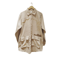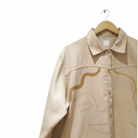 subtle textured preloved caramel brown shirt | featuring face and linear / block design hand painted in silk ink and fabric paints|| cotton mix